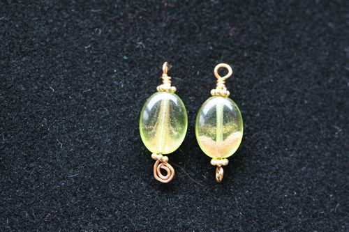 (Glass and gold-filled wire – no earwires because I don’t have any gold ones at the moment)
