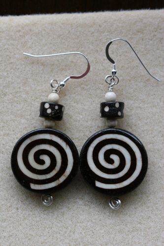 (wood, I think, and sterling – not sure if the lightweight tiny whitish ones are pith or what))