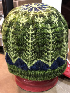 The pattern is Gleði – I fell in love with this pattern and knit it entirely our of yarn scraps left over from other projects. Ted rarely wears hats, I didn’t need one, and I don’t think any others in my family would have worn it, so I sent it to my friend Rebecca who appreciates handknits and moved to a very cold climate this year.